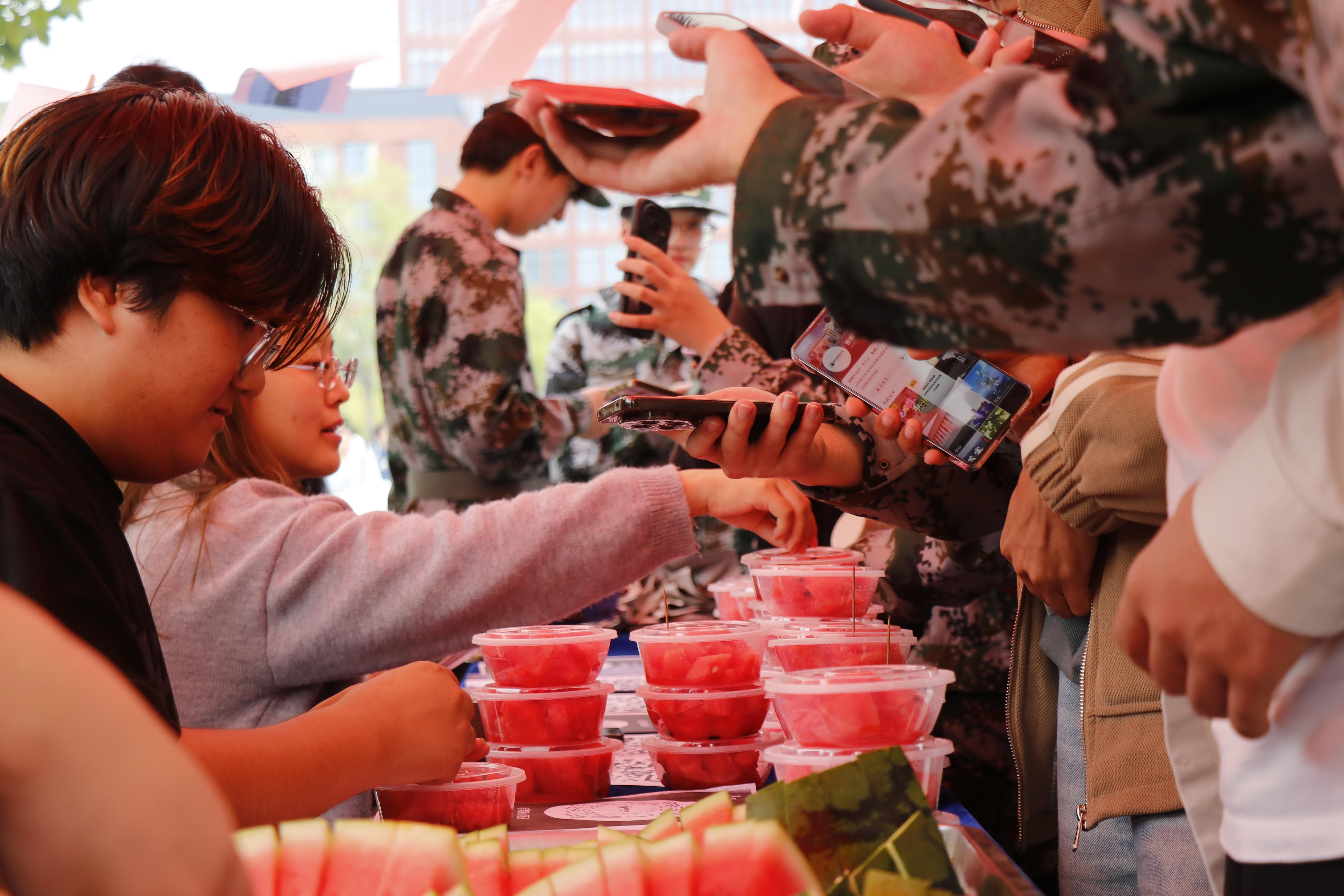 这份甜蜜也串联起校园与社会的温情纽带。授课老师们在收到礼物时表示,这是对教学工作的认可,更是对“青春行动”的生动呼应。校园周边的环卫工人们接过带着凉意的西瓜,感动地说:“没想到过节还能收到学校的心意,咱们城市的‘美丽’,就是这样一点一点攒出来的!”